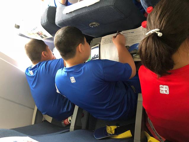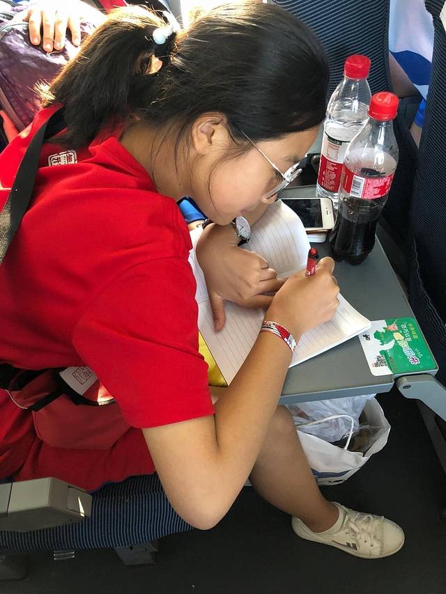 女孩们很听话,在车上写最后一篇旅途笔记。