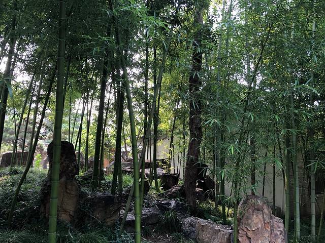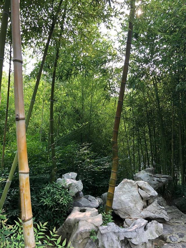 来到江南,随处可见的便是一处处的竹林,错落地长在假山乱石间,孩子们一一从竹林间穿行而过,亮丽的颜色对比甚是好看!