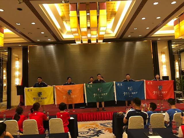 我们这次共有五个营,这是各营营旗和每营的副总领队,往上还有总领队,下面每营再分各组的领队。我带领的孩子分到了二营。