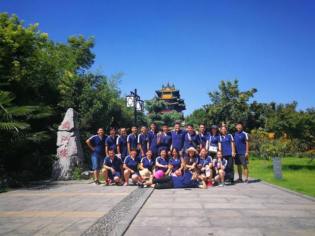 名扬四海的千年古刹大明寺是我们旅行的第一站,这座古老的寺院因一位高僧而扬名,那就是鉴真大师,这是他东渡前担任主持的寺院,一直香火不断,就在我们参观游览的时候还看到有很多拜佛上香的人。每个营都有一位专职导游,这次我们营的导游姓于,是一位身材娇小玲珑,长相甜美的江南女孩。她是土生土长的扬州人,在大巴车上就给我们普及了这座城市的很多历史人文知识,又补充了很多当地居民的民俗习惯,真的非常受益!她先带领我们来到大明寺的大雄宝殿,大殿面阔三间,檐高三重,代表了这座大殿的最高等级。寺院内部不能拍照,无图。