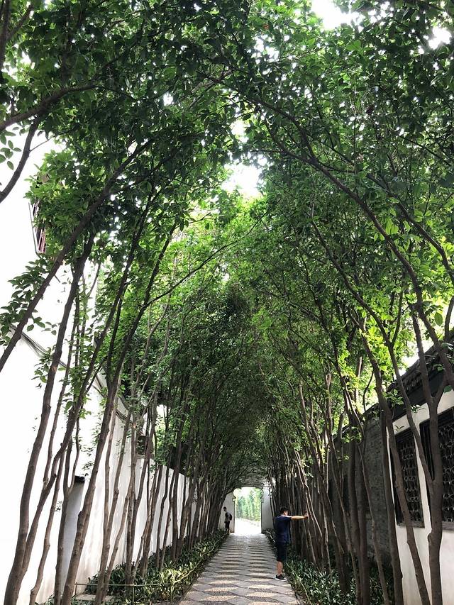 那天最后一个景点是何园,又名”寄啸山庄“,是一处始建于清代中期的中国古典园林建筑,被誉为“晚清第一园“。导游介绍《扬州画舫录》有“杭州以湖山胜,苏州以市肆胜,扬州以园亭胜,三者鼎峙,不分轩轾”的语句,可见,乾隆嘉庆年间,甲天下的是扬州园林,而不是苏州园林。由于扬州盐商富甲天下,他们有足够的财力来建造园林,穷奢极欲。据统计,扬州城内私家园林最盛时达200多处。我们行程中就安排了两处园林——何园和个园。