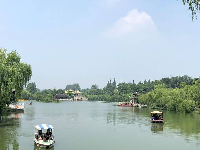 我觉得瘦西湖与西湖最主要的区别在于来到西湖看到的是一片开阔宽广的水域,而瘦西湖则是带状分布,水道弯曲狭长,各景点沿岸分布。