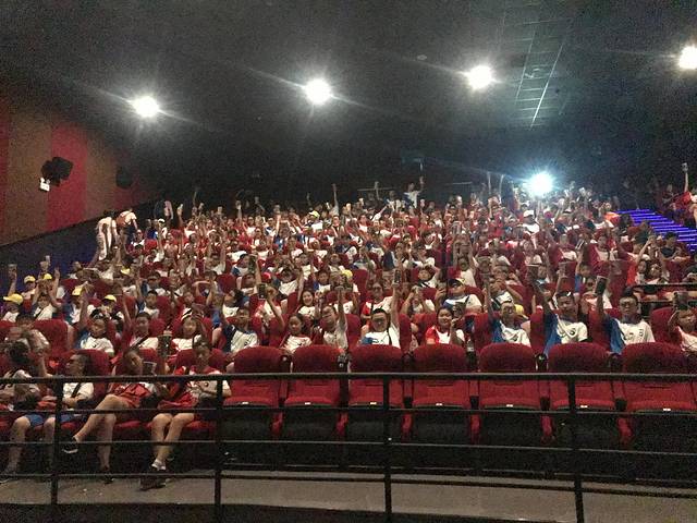 午饭后,回到酒店简短休息,然后全体孩子看了一场电影《摩天营救》。每人一桶爆米花,瞧瞧这气势,包场哦!在几个关键情节的地方,孩子们主动鼓掌,获得了樊星老师的表扬,表扬声刚落,是更热烈的掌……真是可爱而不谦虚的孩子们啊!