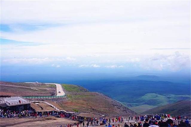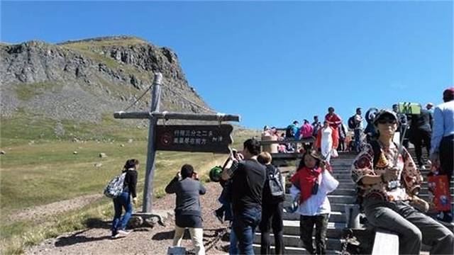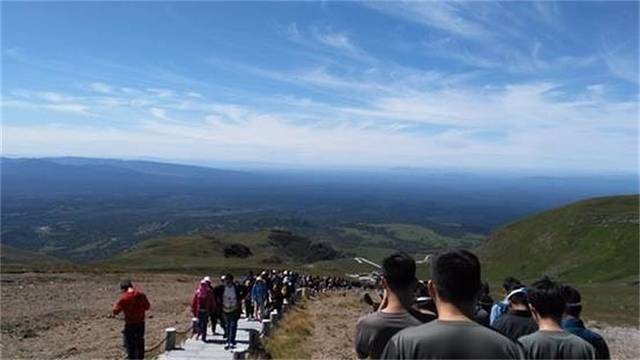 北坡有AB两个观景台,A通道离下车的地点不远,大家就都在这排队了。其实两个口是相同的,都能到达天池,A上B下或者B上A下都可以。