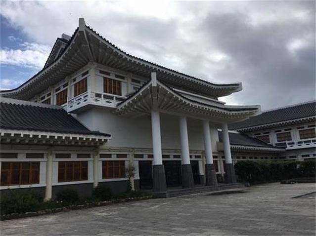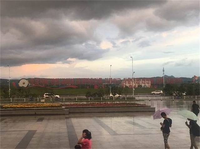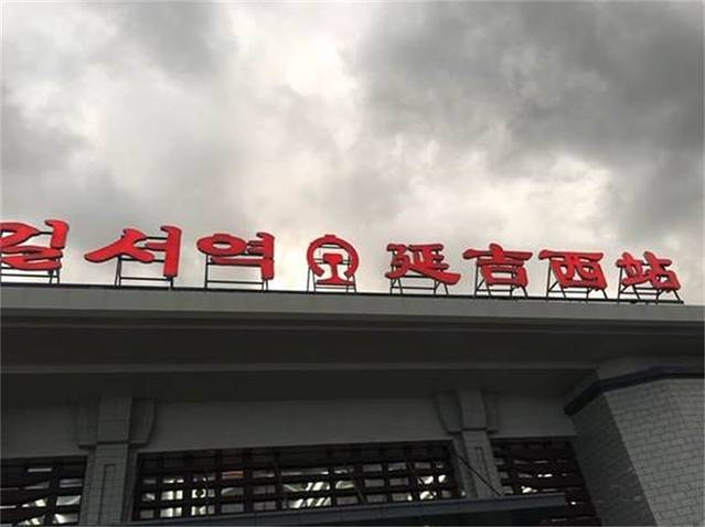 车站对面的大标识牌也是双语的,真是有朝鲜特色呢,仿佛出国了一样。这个时候雨也渐渐的小了。