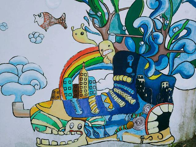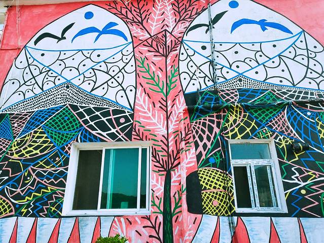 东海渔村里面不只是房子的外墙是壁画,很多围栏,小角落这些平庸的地方,都因想象力而变得独特。
