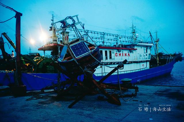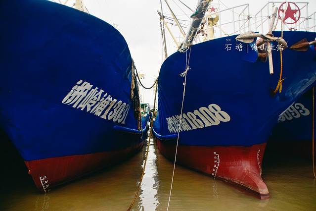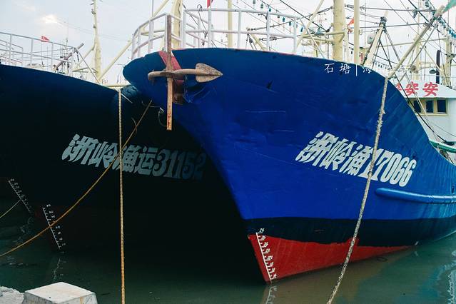 这个时候是 石塘 的休渔期,以至于很多吨位级的大船此时都像卸甲而归的将士,稳稳的停在港湾处,等待下一次出征。