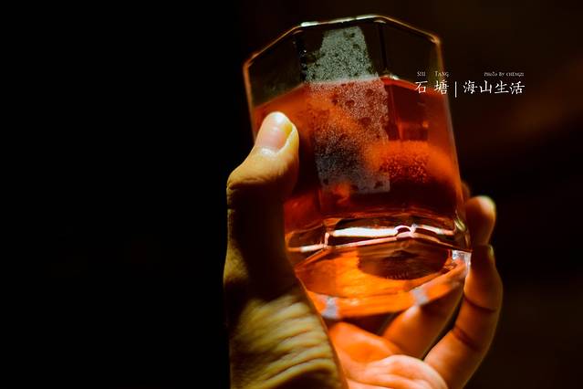 反正海风能吹得人清醒,这一晚,我们尝试了几个国家的精酿啤酒,原麦味的醇香入口就能散开,但还是抵不过咱们 石塘 自酿的杨梅酒,据民宿老板说,这是春天的时候在山头的杨梅树上摘的,个儿大肉厚,最适合泡杨梅酒。