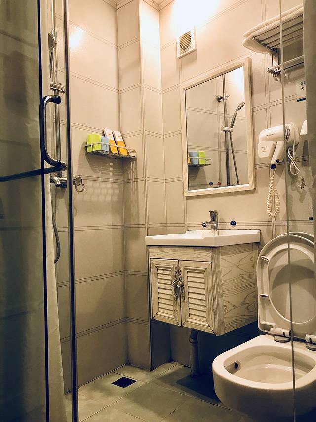 旅店位置很好,在沱江边上点,走了两分钟就可以看到沱江,非常近。外面的装修风格也很小清新,粉粉的,大爱,进去大厅都是粉色的装饰,从预定房间到入住,有什么不明白的都可以微信问老板娘,一一都会为你解答,服务很好。我们入住的是有小阳台的,夜晚开灯的时候很美,适合在阳台小坐,晚上很凉快。