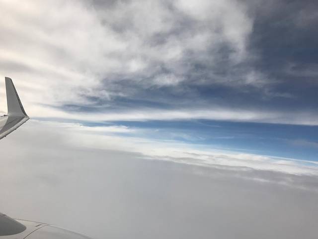很幸运的是,杭州大暴雨,刚飞了没多久,就见到了蓝天白云。