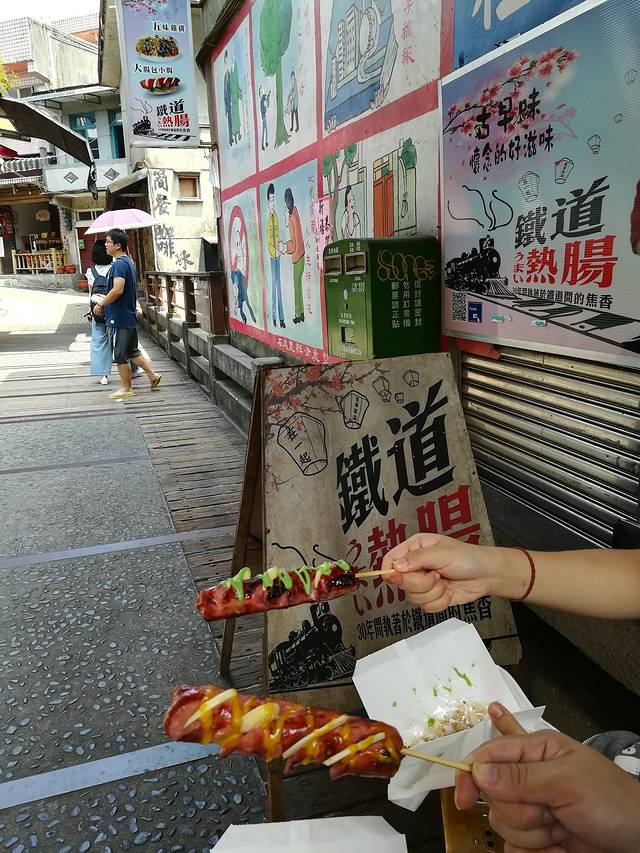 平溪老街不大,但很有味道,游客也没十分多,其实在平溪放天灯更有意思,只是我们去的时候是正午,还是傍晚放比较好看,在平溪,我吃到了正宗的台湾香肠,比昨晚的夜市强多了。