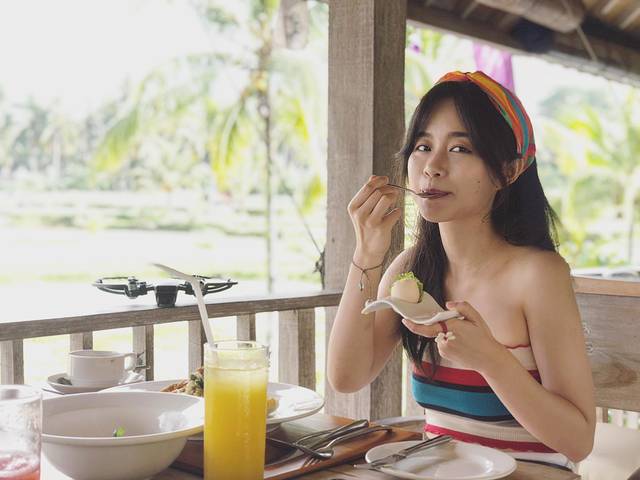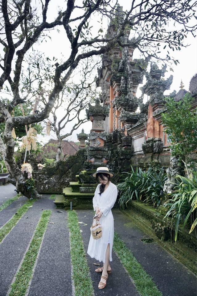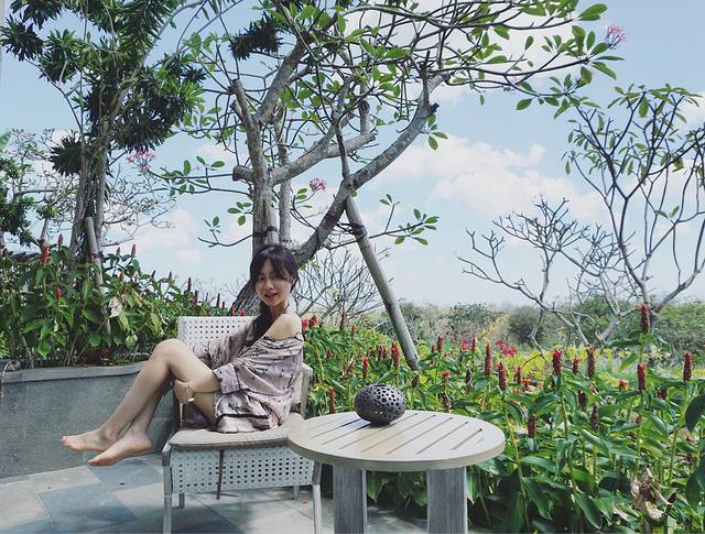 👗 一是素色长裙,和 巴厘岛 的丛林景色相映成趣: