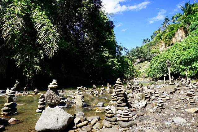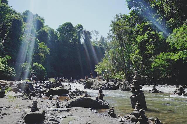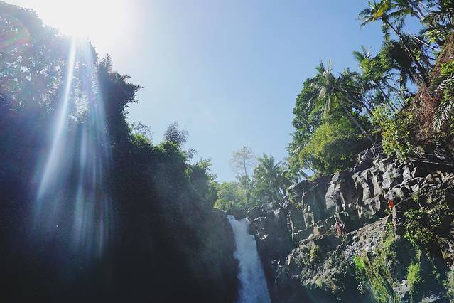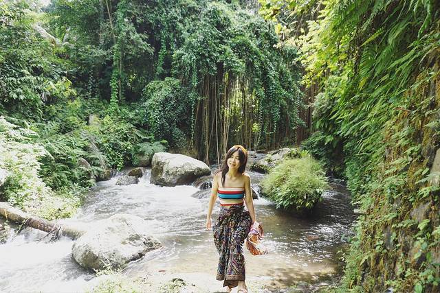 巴厘岛瀑布有很多,最网红的是Tegenuengan Waterfall。它红也是很有道理的,虽然算不上壮观,但周围种了很茂盛的椰树,旁边散落着的鹅卵石,都被垒成可爱的模样。景区里还有个baby waterfall,比较清秀,观感也很独特。总的来说,就是这个瀑布适合拍照,只是红起来之后,这儿的人就多了,所以我们也有考虑去别的瀑布。