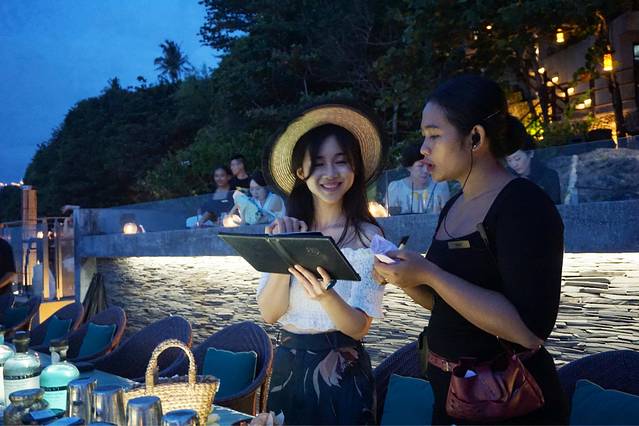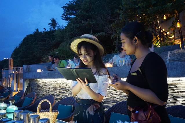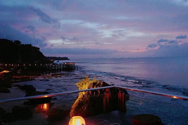 我们是在情人崖看完克差舞之后去金巴兰吃的晚餐。表演结束是晚上9:00左右,那时候已经不太好打车了,我们请售票口的工作人员帮忙叫的蓝鸟,到金巴兰海滩烧烤店一带差不多50块。