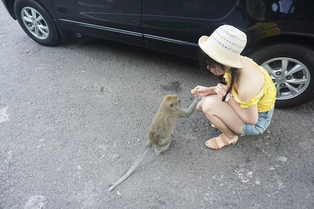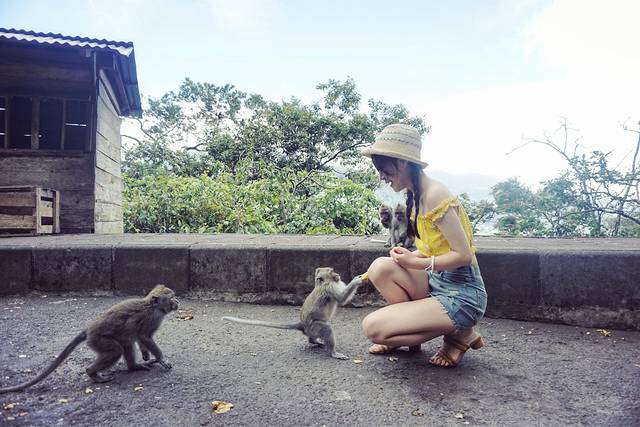 值得一提的是,到这个观景点的路上会经过一个小猴子聚居的地方,这儿的猴子每一只都萌到骨子里,会管你要吃的,但不争不抢,排着队伸手要那种。大家包车过来的话,沿途看到猴子,喊司机停一下就行了。听司机说,这儿的猴子是巴厘岛最温顺的,像圣猴森林和情人崖的猴子都看管了来来往往的游客,摸清了游客的套路,所以胆子大,敢抢敢抓!