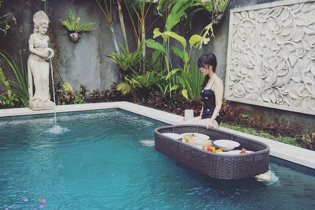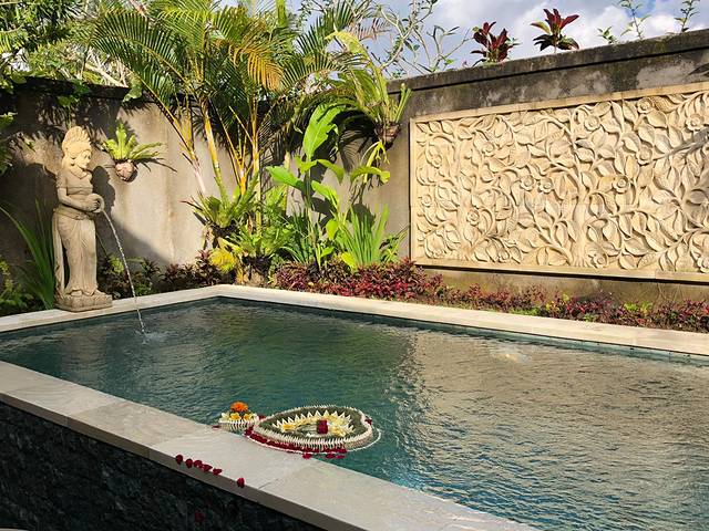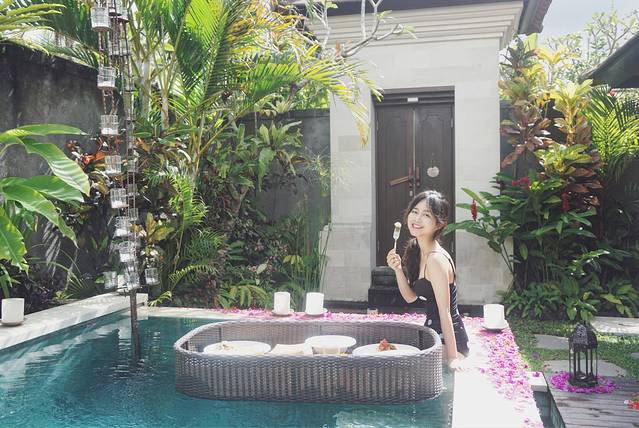 这间酒店是在booking上找到的,筛选条件是“带私人泳池”、“别墅”,朵妹觉得这是符合条件的酒店中性价比最高的了。在乌布逗留期间住这儿,有种身在丛林中的既视感。