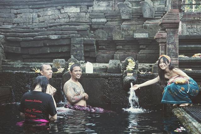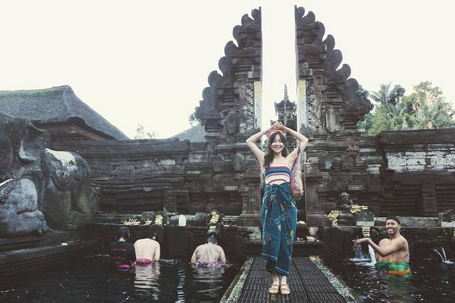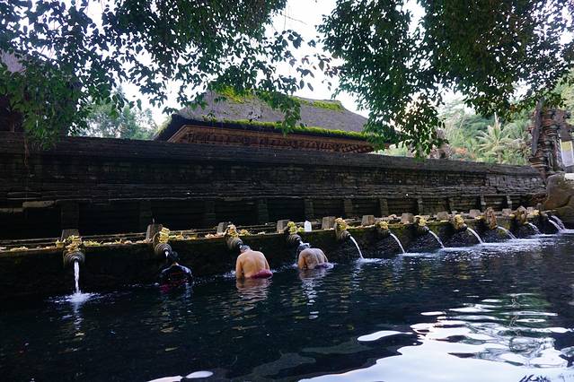圣泉寺已经被许多blogger炒得很火了,是一个对外开放参观的宗教场所,许多印度教教徒远道而来就为了浸一浸圣泉寺的水。大多数教徒都是从清晨就来,因此上午是这里最忙碌的时候(当然也是听我们的司机说的),所以我们选到下午五点左右赶到,那时候无论是游客还是来洗圣泉澡的教徒都比较少了。