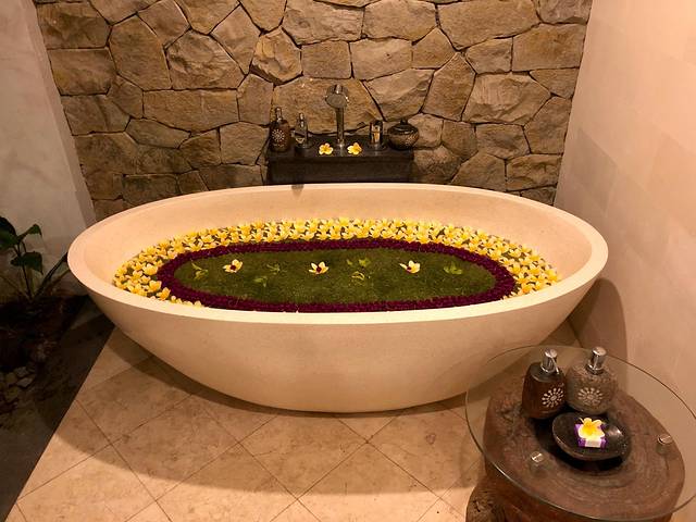 一是Spa,大家都知道 巴厘岛 理疗师的手法独树一帜,来了一定要体验。而艾美的独特之处在于他们的产品,所有的精油和洗浴液都是当地传统理疗师调制的,价格和欧舒丹相当,使用体验上朵妹觉得艾美的产品更清爽,大概是因为调配的时候结合了 巴厘岛 当地湿热的气候。所以如果你是大油皮,做完spa可以买些产品带回去。