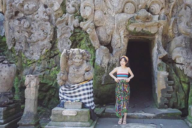 象窟其实和大象没有关系,只是据说发现这个遗址的时候考古学家希望以此找到大象的踪迹,所以就以象窟命名。这是巴厘岛唯一一座佛教寺庙,象窟里面是供佛家僧人修行用的(有木有想到莫高窟的那些修行洞,我觉得是异曲同工的)景区里面还有一个圣池,据说是供人洗澡用的,我觉得可能和圣泉寺的功能类似吧。