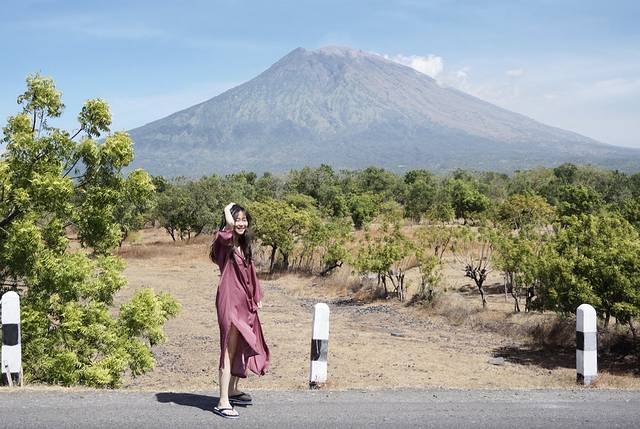朵妹虽然深爱潜水,世界各地的体验潜也试过六七次,但因为博士狗,文献堆积如山,一直没来得及考证,所以最后选择了图兰奔。从金巴兰过去车程挺远的,单程3小时左右,但路上会经过好看的梯田和阿贡火山,可以喊司机停在路边拍照。低头第一张图就是👇