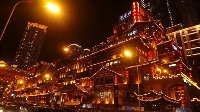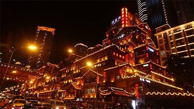 出来的时候已经亮灯了,晚上就去洪崖洞看夜景。