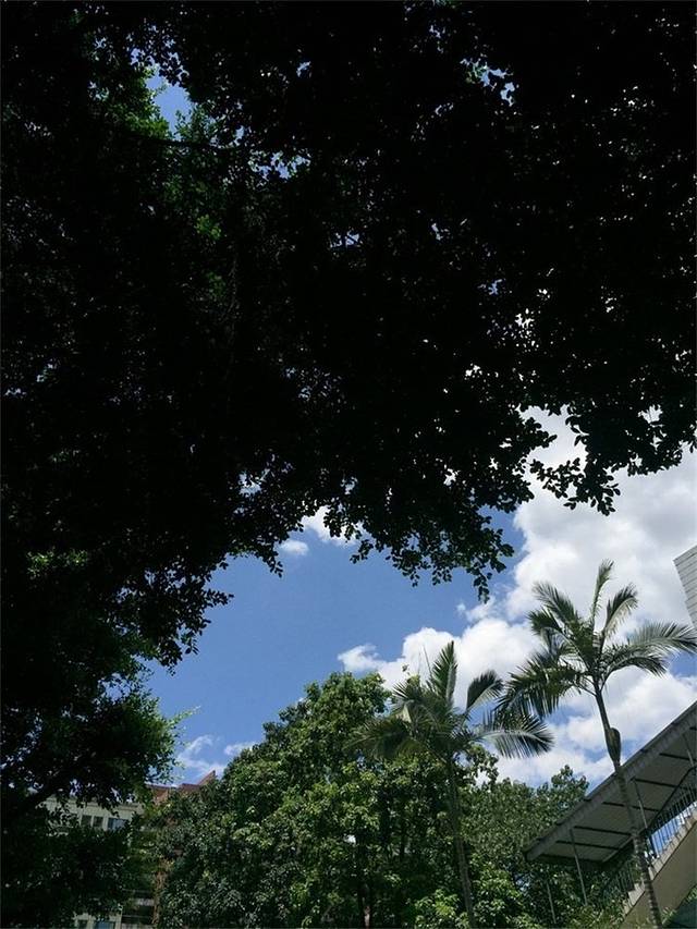 今天的天气真是太好了,这云朵像不像棉花糖,偶尔还有一阵阵风吹过。校园里的树很多,走在树阴凉儿下也不是热的受不了的那种热。
