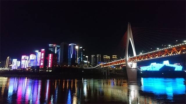 在洪崖洞拍的嘉陵江大桥,景色也十分的绚丽。