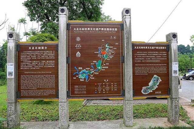 第二天报了大足石刻的一日游,早上集合后,统一坐着大巴车来到景区,不到两个小时就到了。其实这种一日游的团还比较自由,这一天就在这一个地方,不至于很赶。