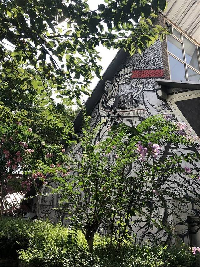 一进门就看到了这个脸谱门,不知道这里的涂鸦是否都是学生的作品,如果是的话那真是太厉害了。