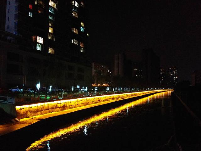 酒店外的桥灯闪亮