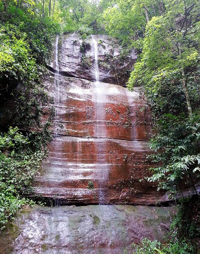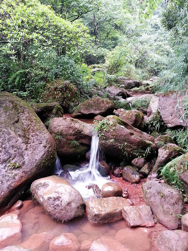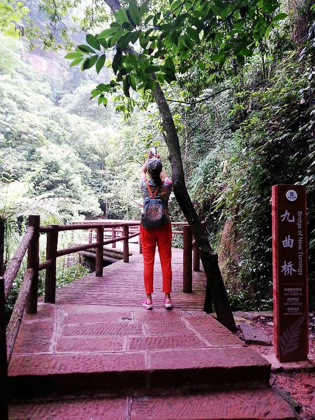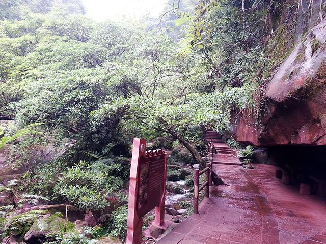 赤水丹霞·佛光岩包含了佛光岩景点和五柱峰景点,从山脚到佛光岩再沿山中栈道走到五柱峰,从五柱峰下山是一个环形,但是距离比较长,速度快的大约三、四个小时,慢点的要五小时左右。我们因为腿疼,就只到了佛光岩景区就原路返回,总共用了两个小时。