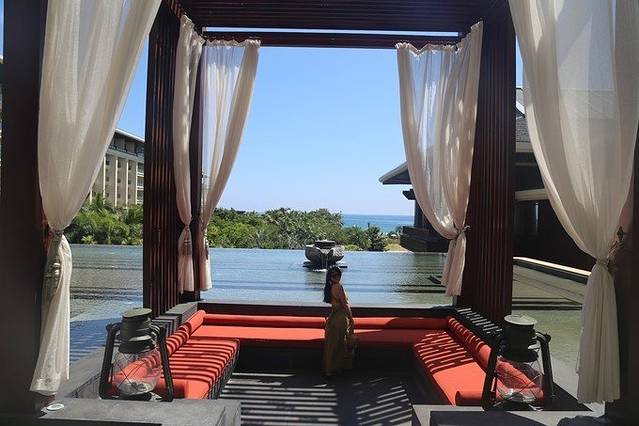 酒店的各处都是风景,拍照的绝佳选择,~~可惜逗逼突然有工作,不过也正好快中午了,太阳太烈,我们就回去休息了先~~~这个在 水里 的亭子真的太心水了~~~
