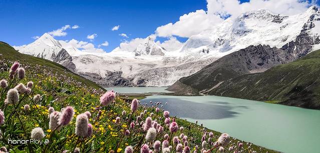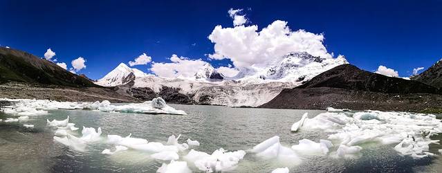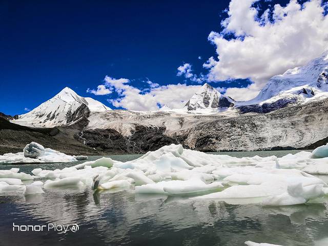 萨普神山下的湖里依然漂浮着万年的冰川。