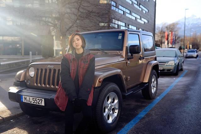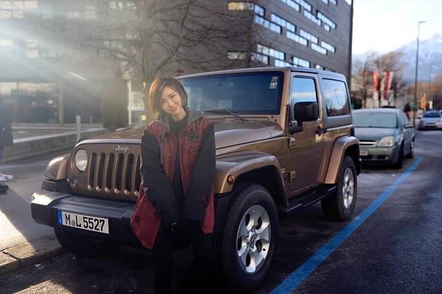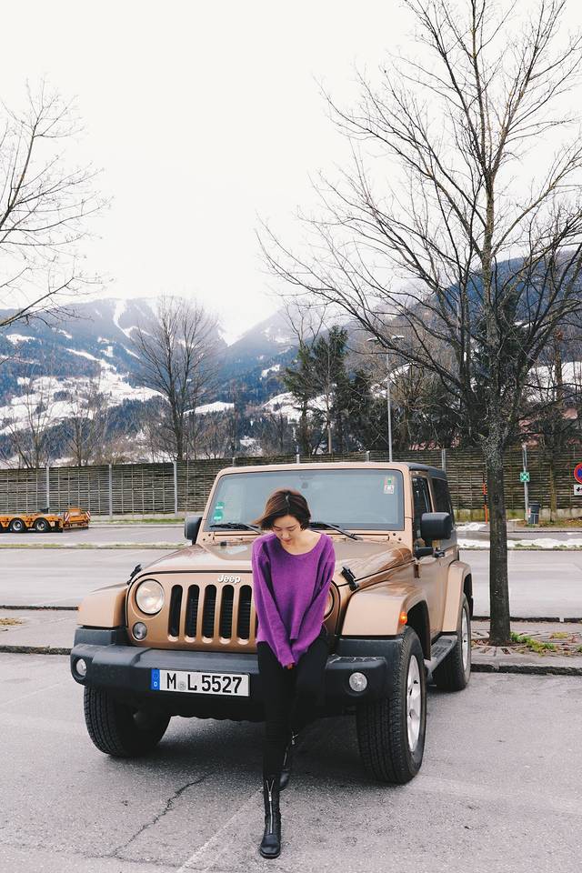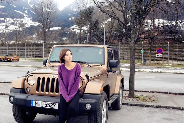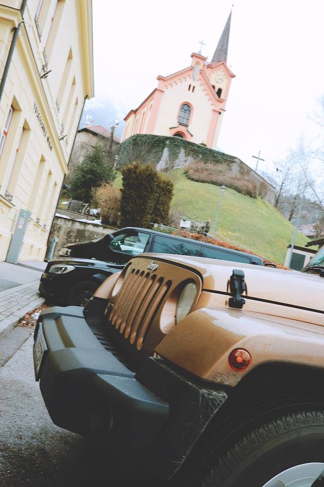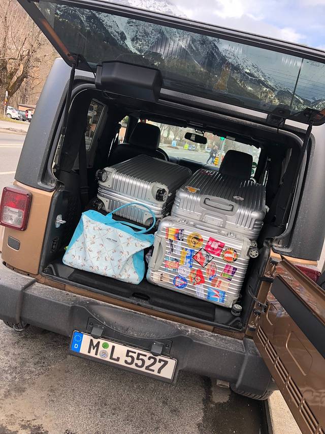 想租辆牧马人在 奥地利 非常不容易,我找了各种网站最后才在 德国 找到能租到牧马人的公司。因为行程仓促,所以当时只剩了这一辆两门版的撒哈拉,不算从 德国 开过来的异地费用,租车价格是270欧每天,税再单算。虽然价格并不便宜,但是公司服务很好,24小时在线,有问题随时联系,而且不管是取车还是还车,都是按照你的时间地点要求,车送到你面前,省去了去租车公司办理手续的精力。我们只有两个人,后排座椅放倒刚好可以放三个箱子外加大大小小的包和吃的,两门版的空间够用了。