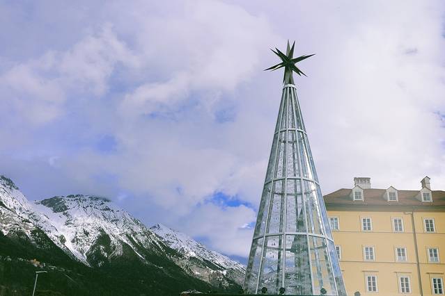 施华洛世奇的总部就建在了 因斯布鲁克 ,这颗在雪山脚下矗立的,便是施华洛世奇赞助的水晶圣诞树