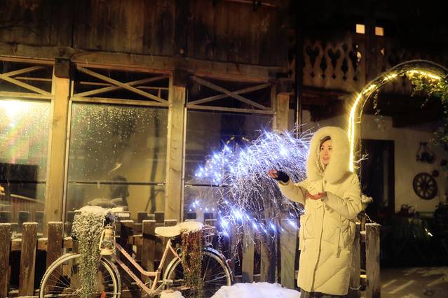 小镇的市中心感觉只有一个操场那么大,晚上6点钟,漫天的鹅毛大雪让街上一个人都没有。中心有一个超级大的圣诞树,只零星点缀了几盏小黄灯,但却显得格外浪漫。圣诞季来 欧洲 旅行,真的是非常正确的决定,因为他们的圣诞树都是真树,那种节日气氛的浪漫,不是国内用各种灯堆砌起的圣诞树可以比拟的