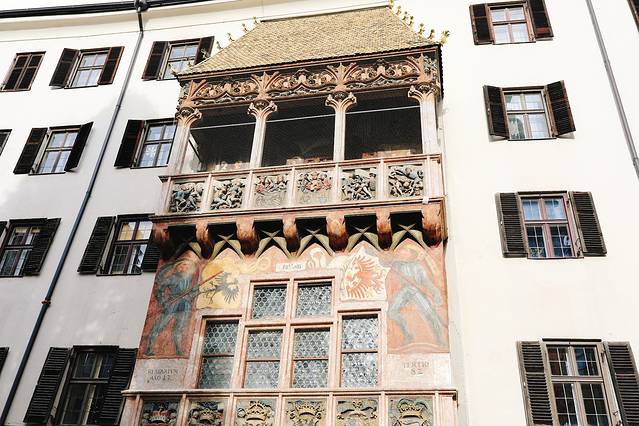 “黄金屋顶”是神圣 罗马 帝国皇帝马克西米利安一世16世纪初迎娶 米兰 女公爵的地方,所谓的黄金也不是用真正的黄金建造,但上边的壁画都极具历史价值。
