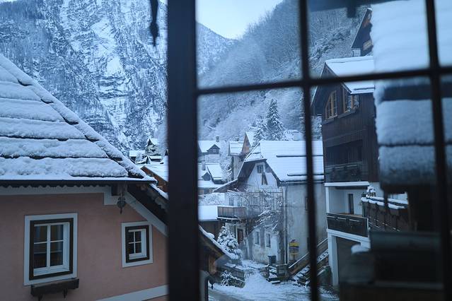 整个小镇被雪覆盖后,就像童话一样。而我们两个人就像这童话里的唯一存在,走路都要轻轻的,生怕破坏了雪落在地上的声音。从来没想过 哈尔施塔特 居然会送我们一场雪,两个穿的像熊一样的我们开心的像200斤的胖子拉着手在雪地里转圈儿。