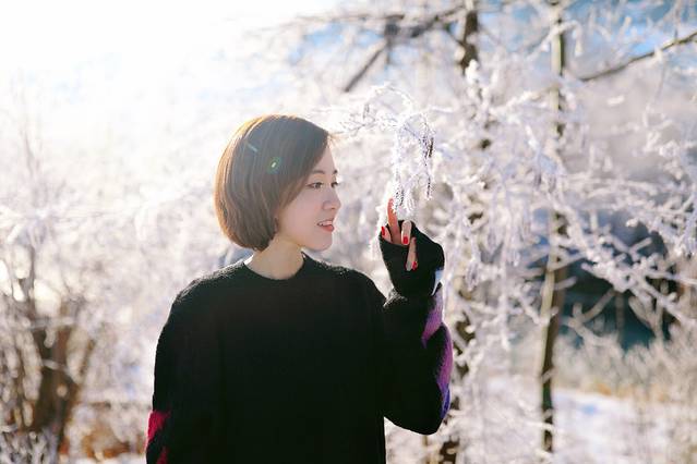 雪薄薄一层挂在枝头,像一场幻梦,恐怕一碰就醒了