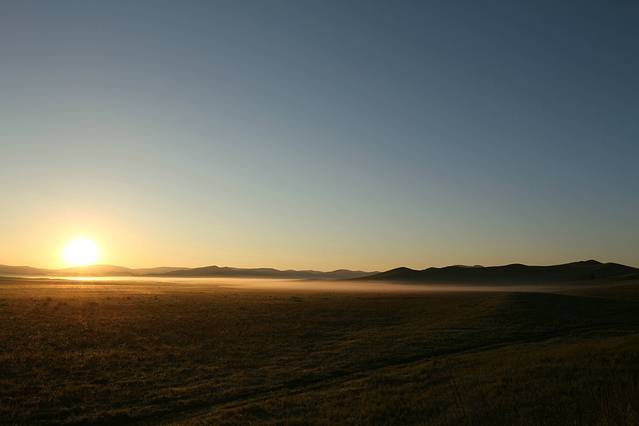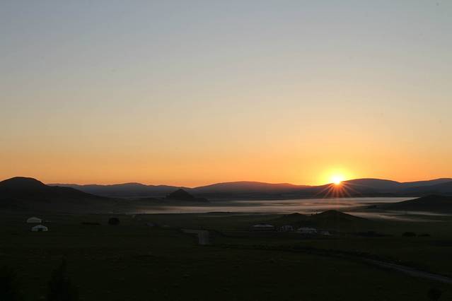 看完日出往停车场走时,正好碰到牧民赶着一群马回来,日出的光洒在马背上都变成了金色~