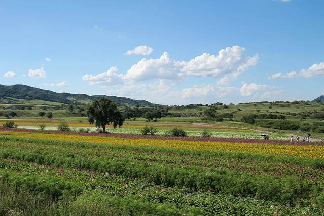 我们从景区大门进来后就一路开车到了花海,把车停在门口可以坐电瓶车进去也可以走路,走路稍微有点远,建议乘坐电瓶车,电瓶车是15元/人,沿途设有四个停车点供大家下来拍照,沿着花海绕一圈大约半个多小时。