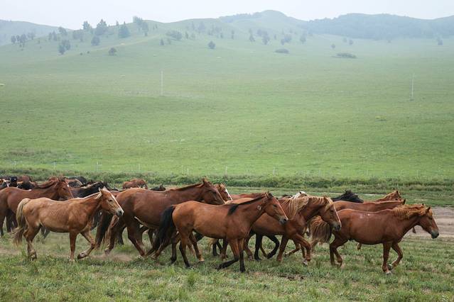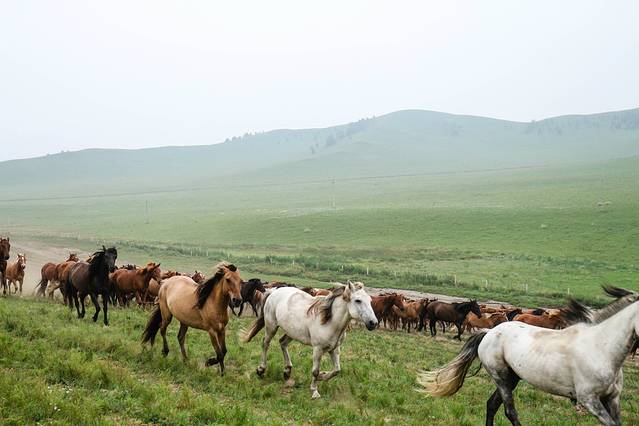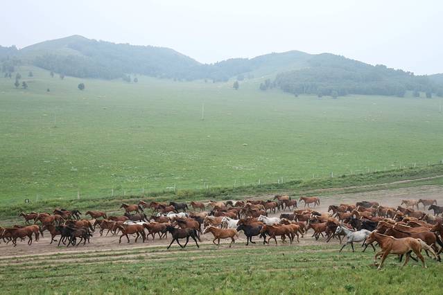 早上五点半左右我们出发去往第三跑马场看跑马表演,时间是早上六点半,可以看马群跑一个来回,价钱是15元/人。早上的天气阴沉沉的,少了蓝天白云的衬托,景色也比之前几天差了一些。