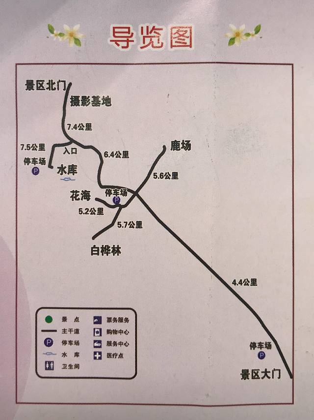 附上一张景区地图,地图非常实用,当碰到没有信号没法导航的地方时,看地图结合路牌就可以顺利找到路。