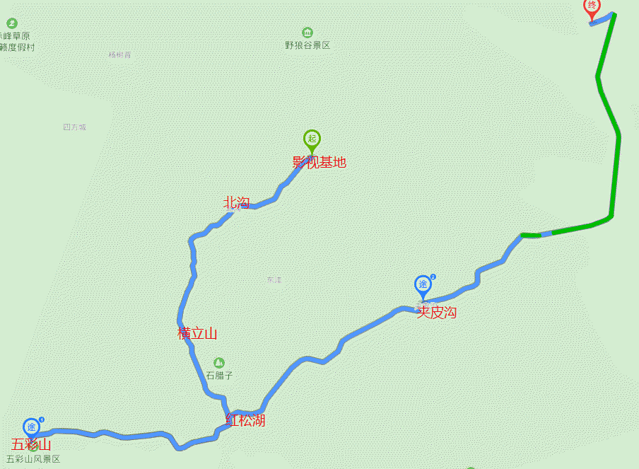 从公主湖出来后我们就开车往北沟方向,之后就一直看着地图走了,沿途都是风景~我们的大致路线如下图所示,每个景点之间的距离都不远,一上午的时间走完一圈还有富余。