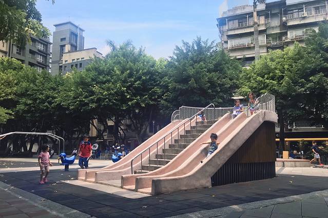 这也是回 台北 必定的打卡点, 永康街这个小公园的滑梯,给人温暖感觉