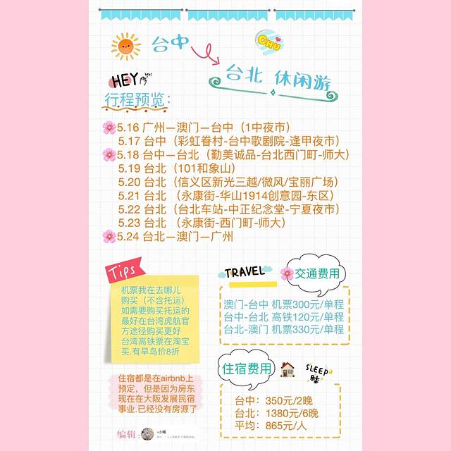 这次换了从澳门出发了 澳门—台中 / 台北—澳门 两程机票合共630元(不含托运)