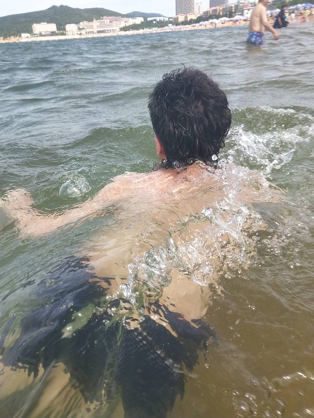 简单收拾一下,换好泳衣就直奔国际海水浴场啦。应该是 威海 水质比较好,也最出名的一个海水浴场。不知道是因为中午十二点的原因,还是台风期的原因。海水浴场人不多。水也不凉。下海正是好时候。