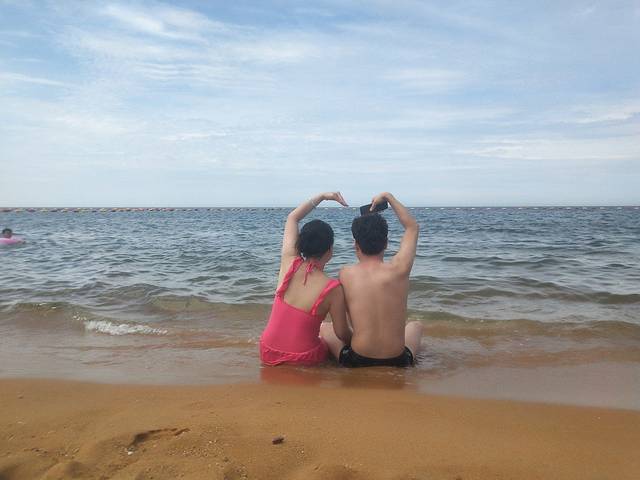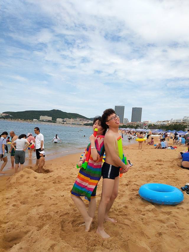但是在去 鸡鸣岛 的途中我们无意中发现了一个刚开放的海水浴场(逍遥港)。人超级少,浅水区很宽广。国际海水浴场的沙滩往海 水里 走几米就到了深水区,比较适合游泳。逍遥港的浅水区很大,浪也比较大。可以坐下感受一下海浪的感觉。很惬意。
