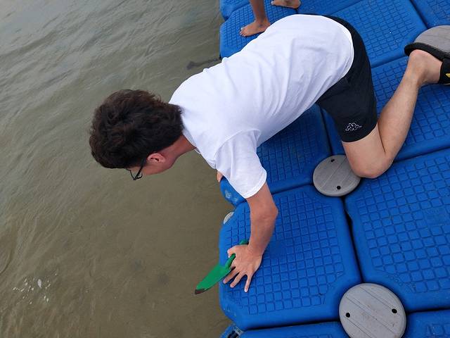 海滩上还有一个浮桥。浮桥附近好多好多小海鱼🐠
