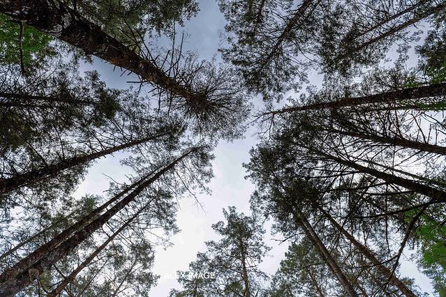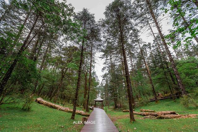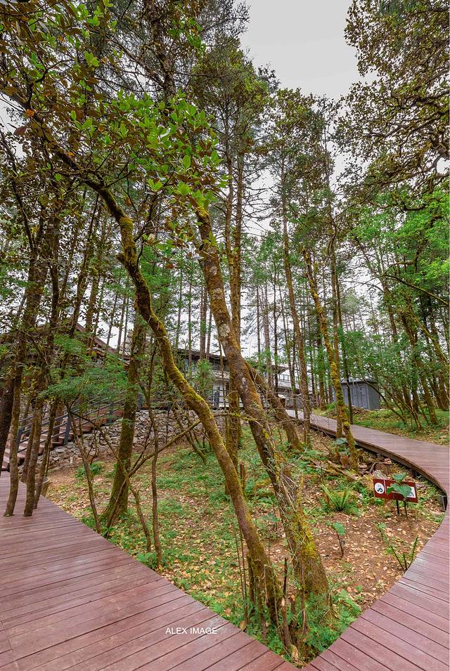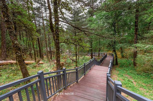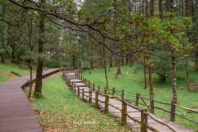 木质的栈道修建在茂密无边的杉树林之间,沿着步道慢慢走,仿佛进入了绿野仙踪的那片森林。